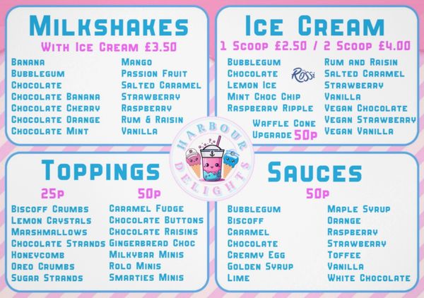 We serve the best and most delicious Rossi ice cream in lots of yummy flavours!